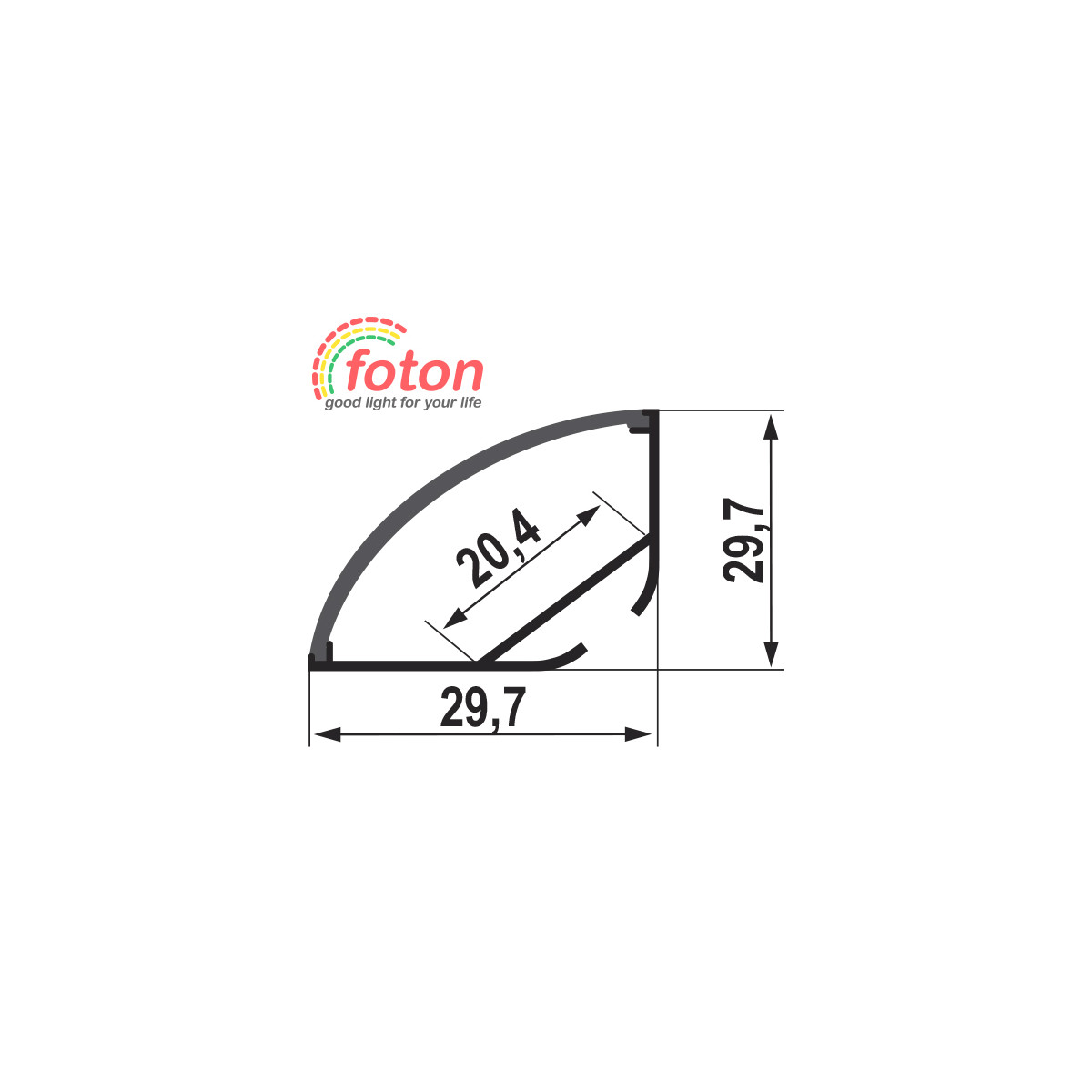 This 29,7x29,7mm angled aluminum profile can be used for 12 V and 24 V LED strips.
