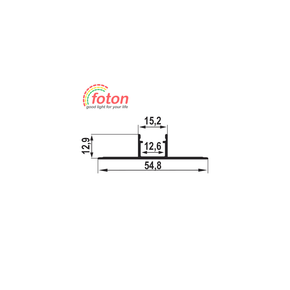 Built-in hard aluminum profile for LED strips 3M 54.8 x 12.9 mm.